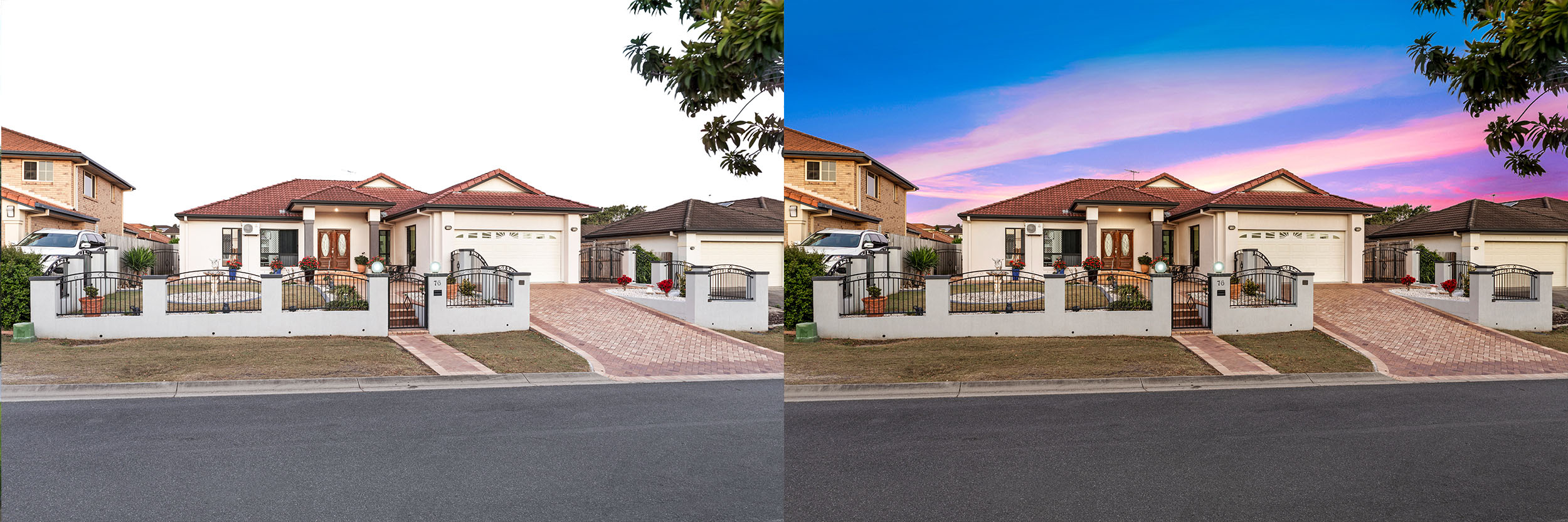 Dusk is a beautiful time of the day but is notoriously hard to photograph, especially for an amateur. Our team of editing professionals will take your property photo from day to dusk with advanced editing techniques. We can turn any daytime or gloomy sky into a breathtaking sunset to really make your listing stand out from the rest.